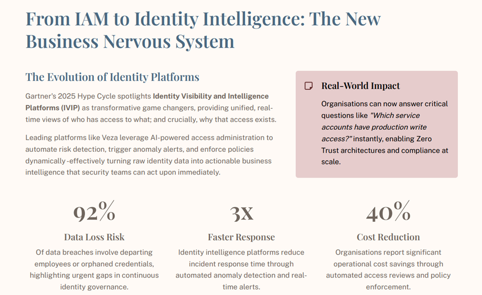 IAM will stop functioning as a tool that checks credentials and start acting as a dynamic decision engine. It becomes the underlying intelligence layer that continuously evaluates risk, intent and authorisation boundaries. The identity layer essentially transforms into the “business brain” of every organisation that depends on digital execution, automation or distributed computing.