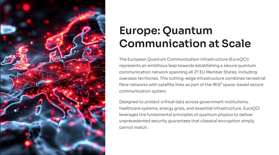 The European Union is investing heavily in quantum-safe communication infrastructure through its EuroQCI (European Quantum Communication Infrastructure) initiative.