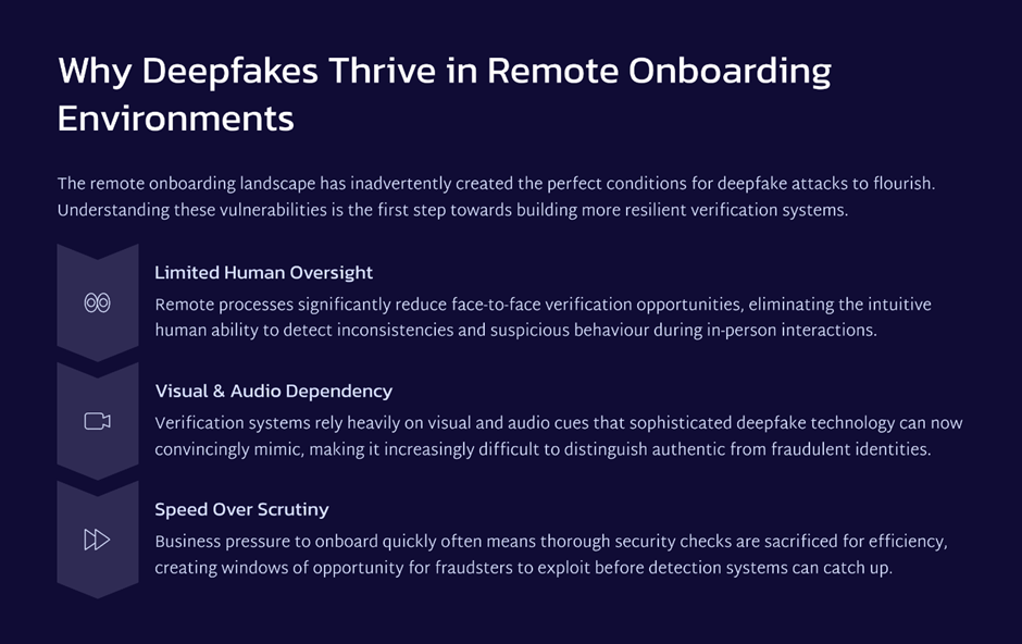 - manipulate onboarding workflows designed for trust, not deception.