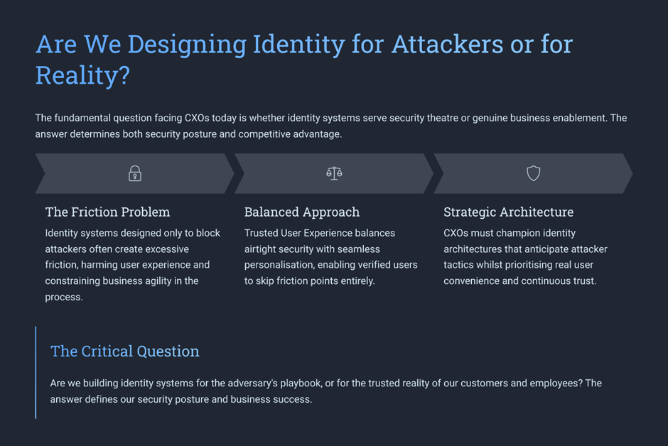 From a leadership perspective, this makes human experience a security control in its own right. Designing identity verification that respects human limits is not a soft consideration; it is a strategic defence. When people remain alert, informed, and supported rather than drained, deepfakes lose one of their greatest advantages: human fatigue.